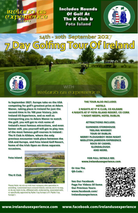 The K Club, home of the Ryder Cup 2006, Druids Glen, Carton House, Portmarknock, Royal Dublin, the Ring of Kerry, Doonbeg, Royal Country Down, Portstewart : golf clubs that are famous the world over and up there with the very best that golf can offer.